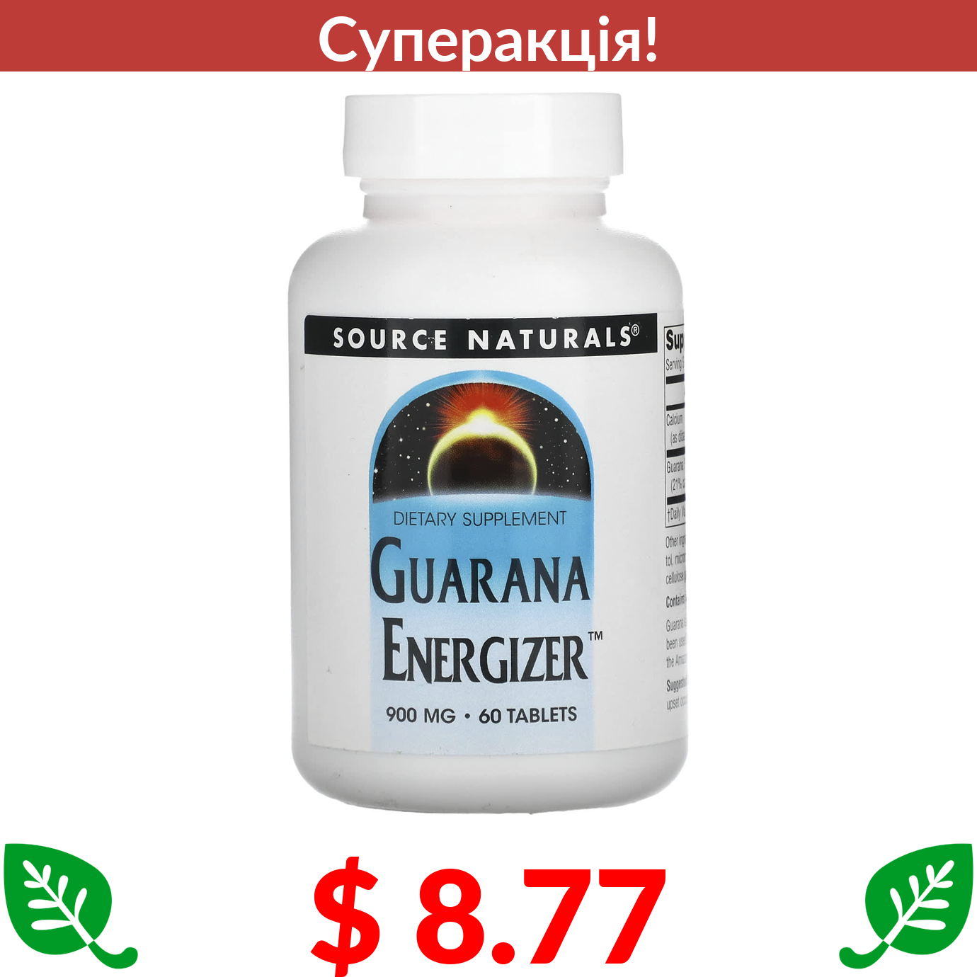 $ 8.77 Source Naturals, Guarana Energizer, 900 mg, 60 Tablets