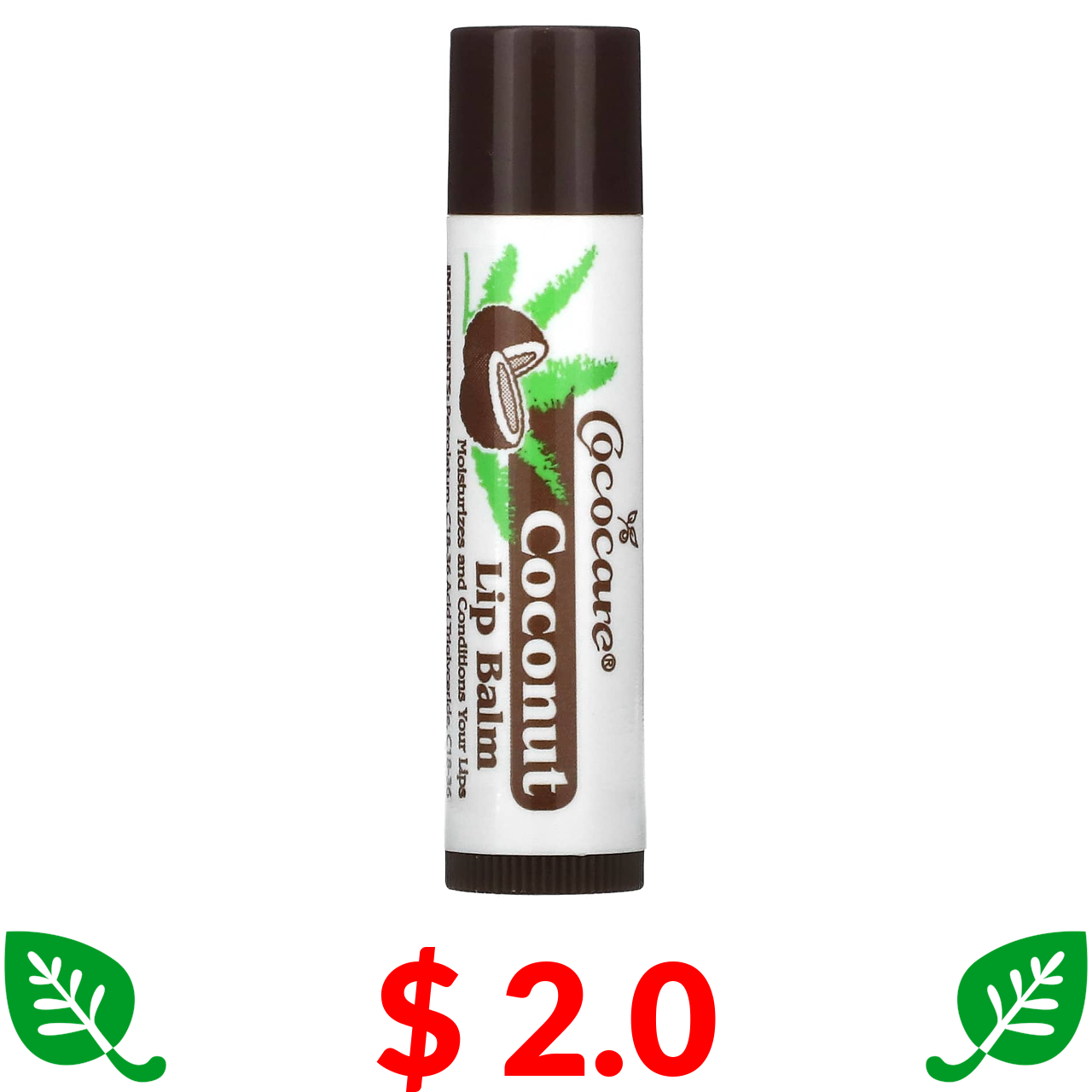 $ 2.0 Cococare, кокосовий бальзам для губ, 4,2 г (0,15 унції)
