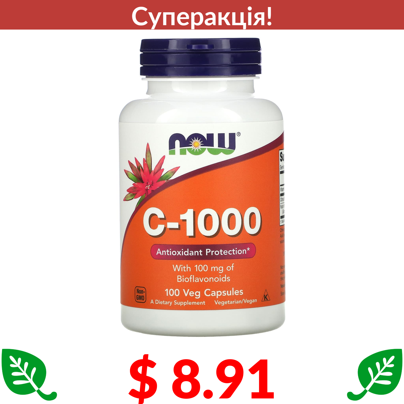 $ 8.91 Now Foods, C-1000, 100 вегетаріанських капсул