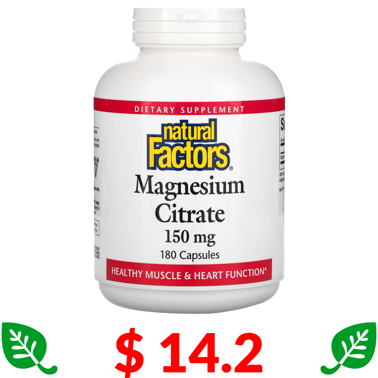 $ 14.2 Natural Factors, цитрат магнію, 150 мг, 180 капсул