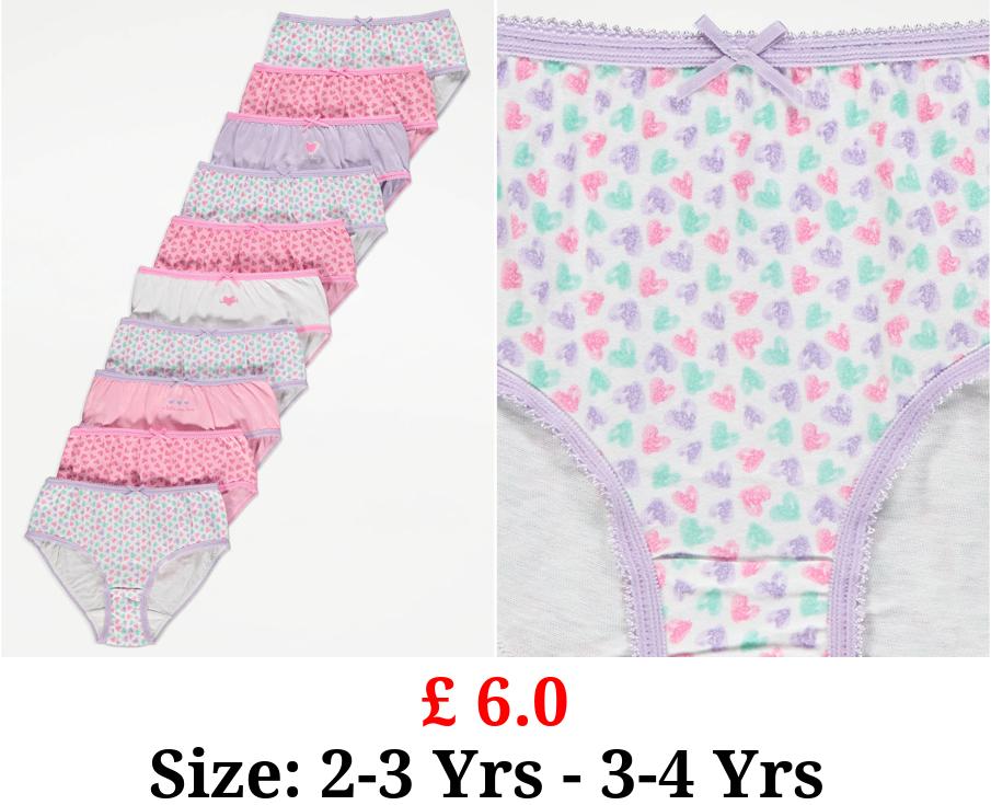 £ 6.0 Heart Print Briefs 10 Pack