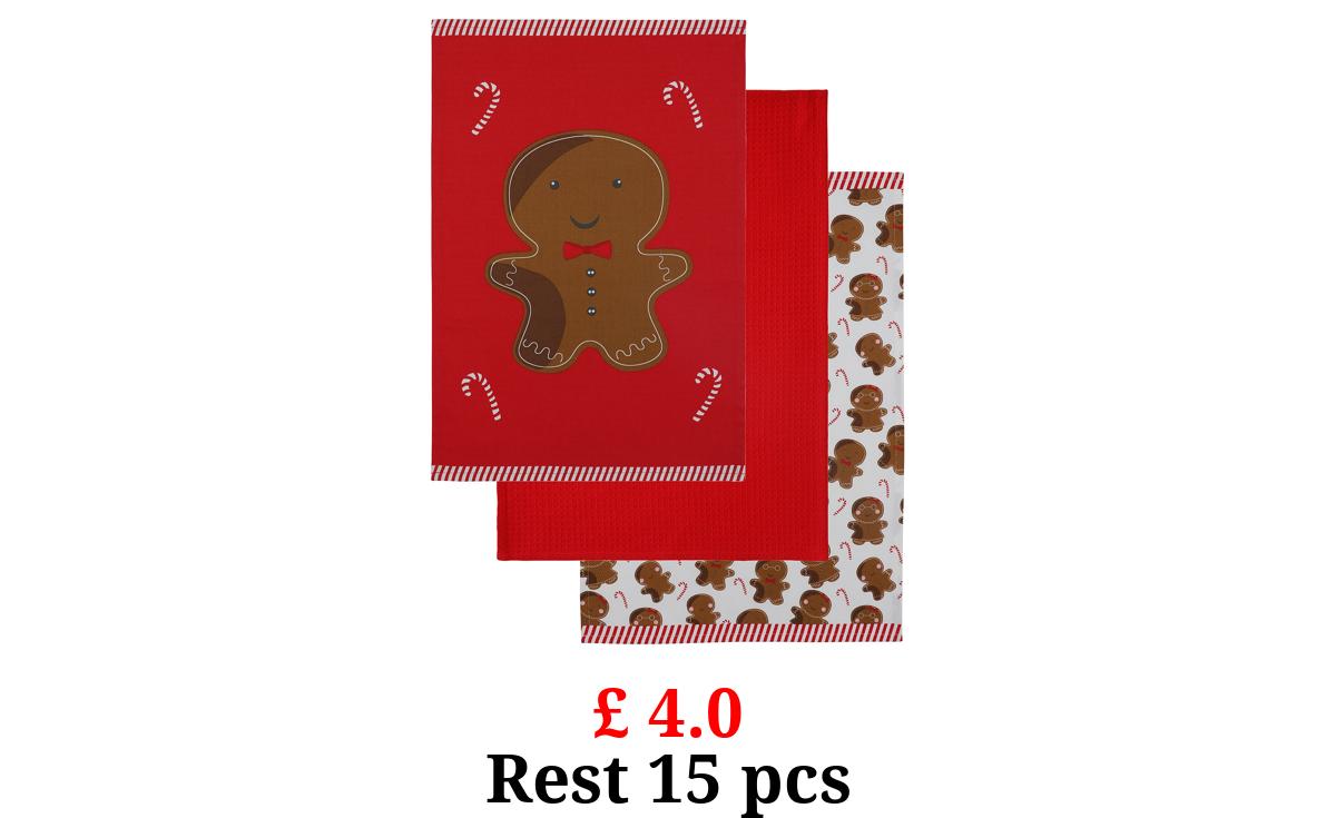 £ 4.0 Christmas Gingerbread Tea Towel - Set of 3