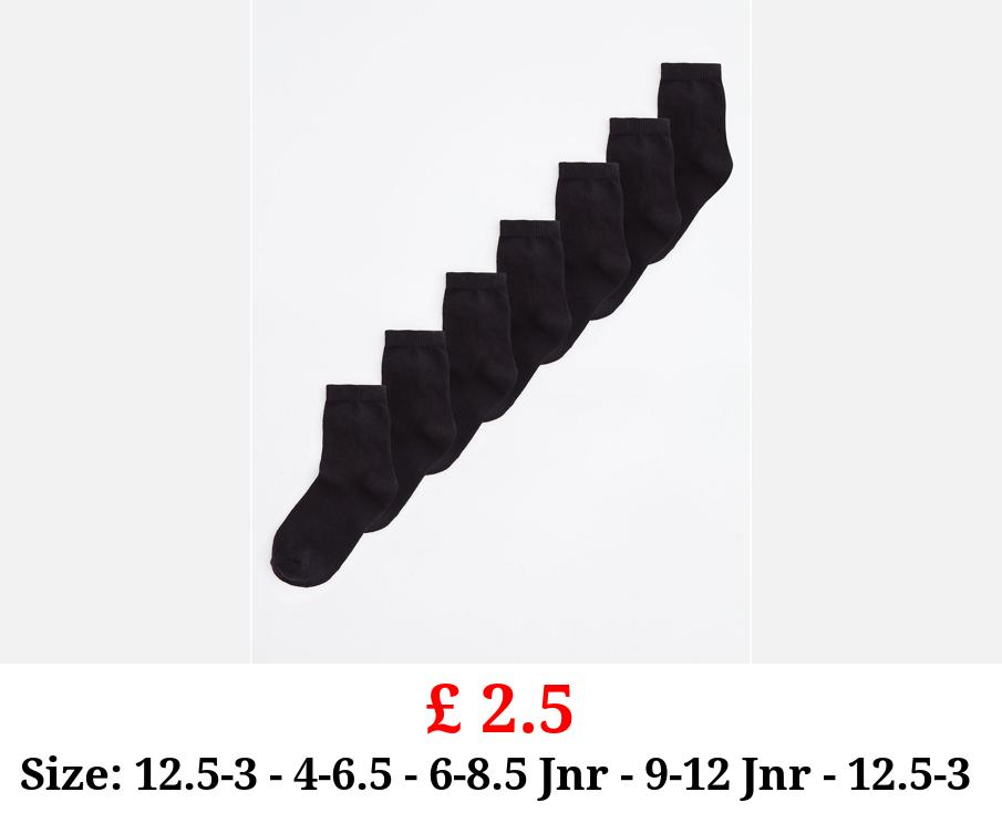 £ 2.5 Black Cotton Rich Ankle Socks 7 Pack
