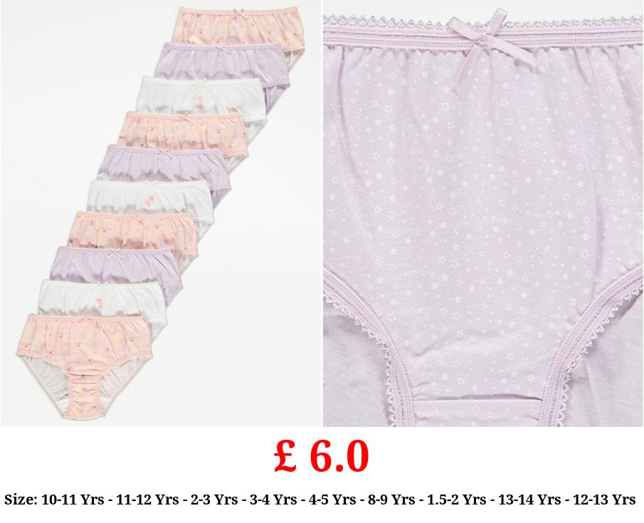 £ 6.0 Ballerina Print Briefs 10 Pack