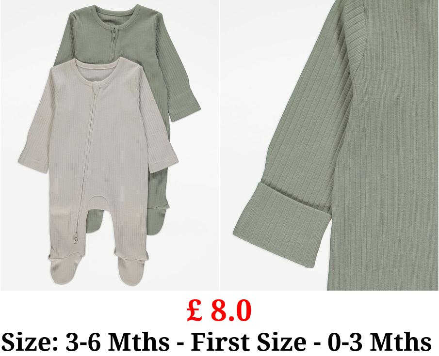 £ 8.0 Ribbed Zip Up Sleepsuits 2 Pack