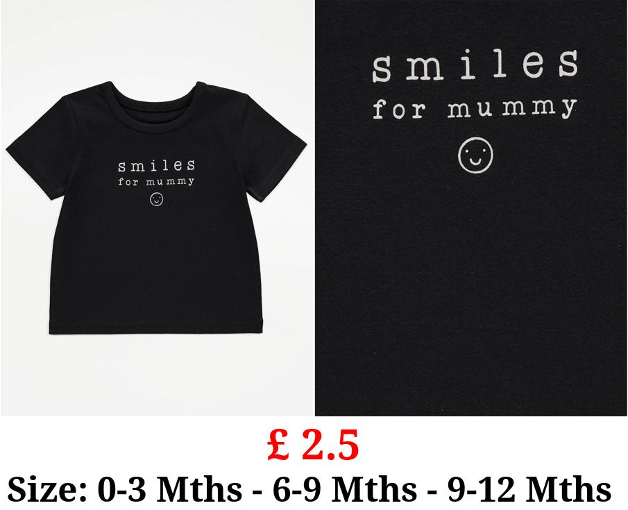 £ 2.5 Black Smiles For Mummy Slogan T-Shirt