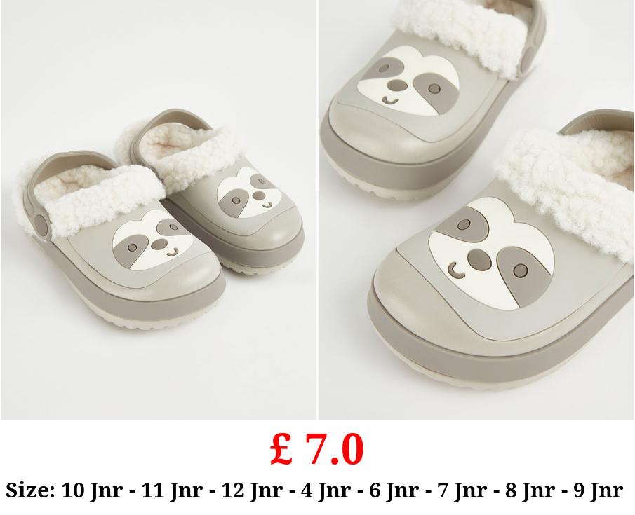 £ 7.0 Grey Sloth Borg Lined Clogs