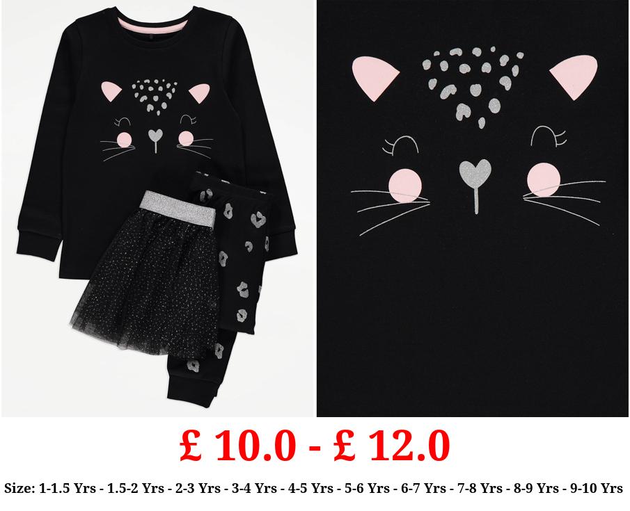 £ 10.0 - £ 12.0 Black Cat Halloween Pyjamas and Tutu 3 Piece Set