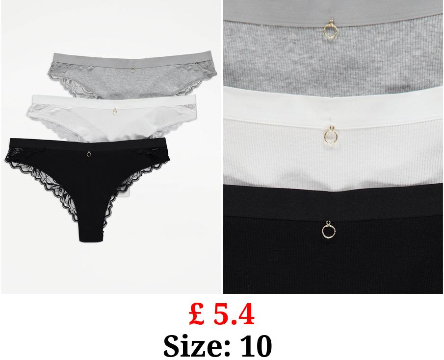 £ 5.4 Grey Lace Trim Ribbed Mini Briefs 3 Pack