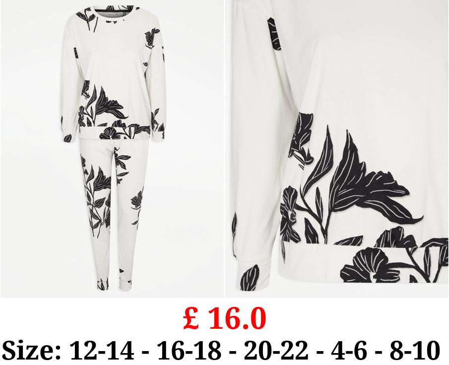 £ 16.0 White Floral Fleece Pyjamas