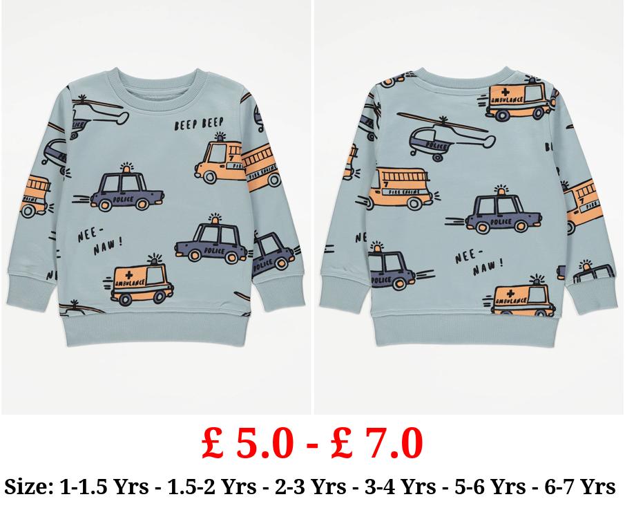£ 5.0 - £ 7.0 Light Blue Vehicle Graphic Sweatshirt