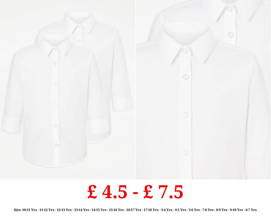 £ 4.5 - £ 7.5 Girls White 3/4 Sleeve School Shirt 2 Pack