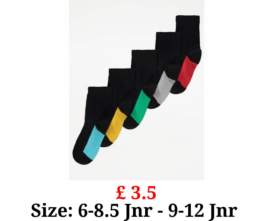 £ 3.5 Black Contrast Footbed Cotton Rich Socks 5 Pack