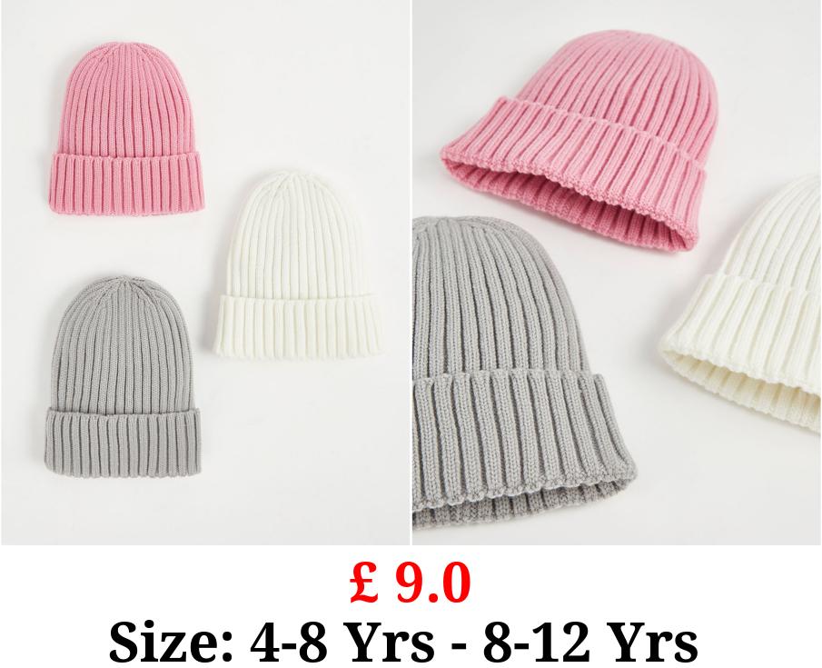 £ 9.0 Knitted Beanie Hats 3 Pack