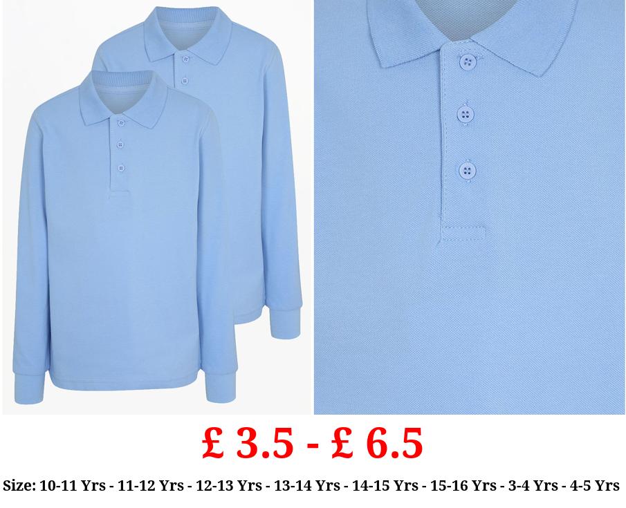£ 3.5 - £ 6.5 Light Blue Long Sleeve School Polo Shirts 2 Pack