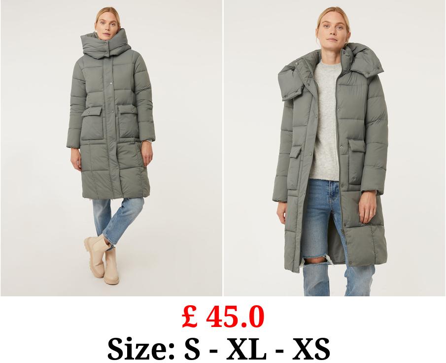 £ 45.0 Grey Longline Padded Coat