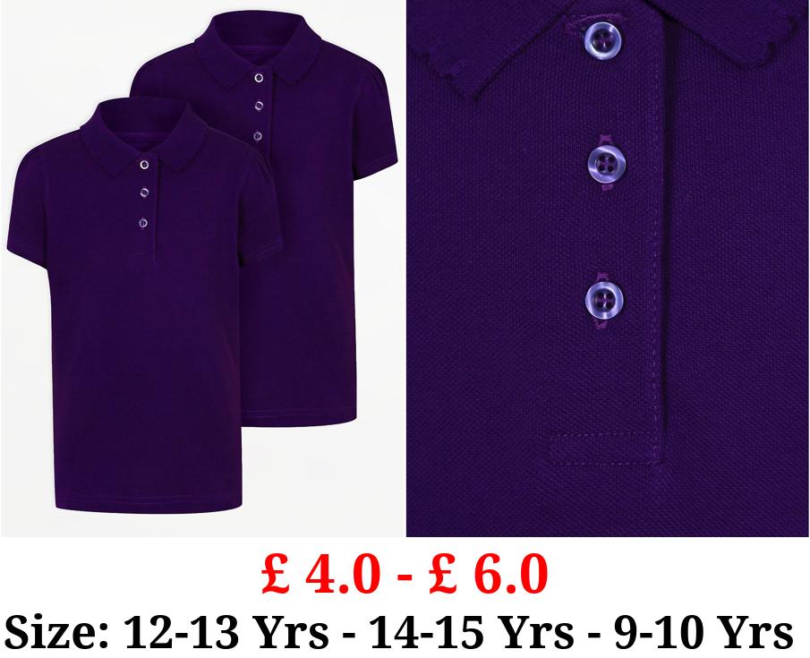 £ 4.0 - £ 6.0 Girls Purple Scallop Short Sleeve School Polo Shirts 2 Pack