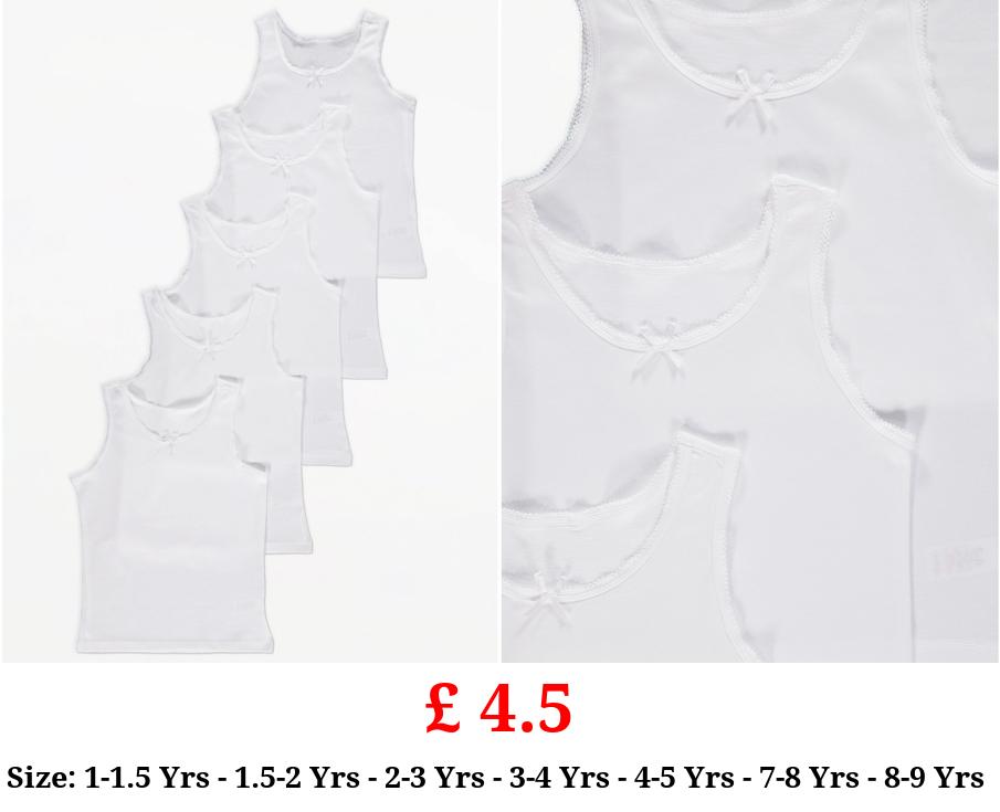 £ 4.5 White Plain Vests with Bow 5 Pack