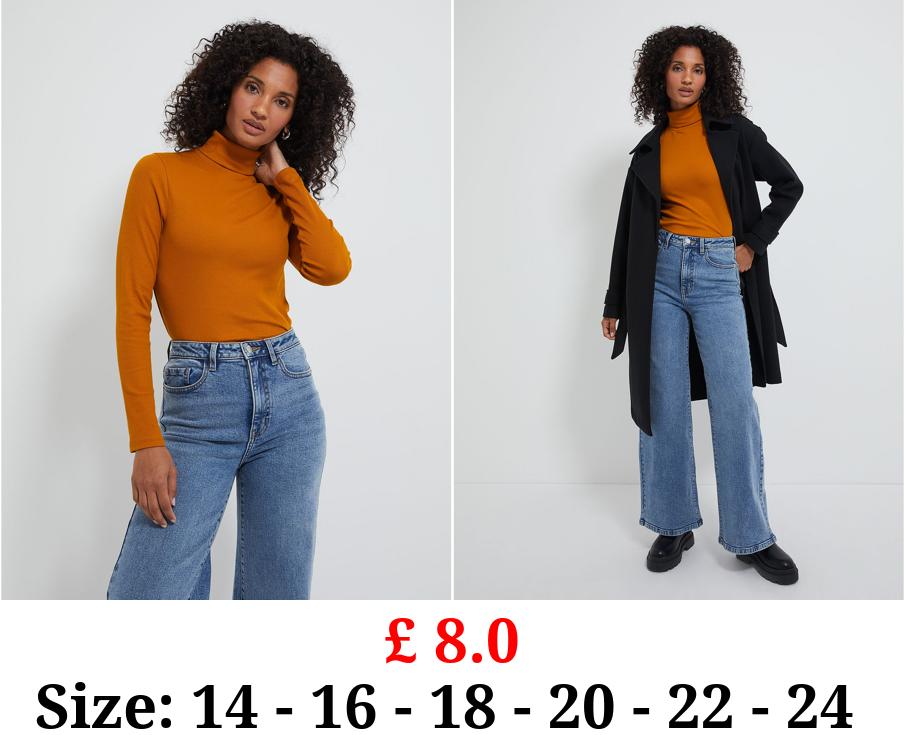 £ 8.0 Ochre Roll Neck Ribbed Long Sleeve Top