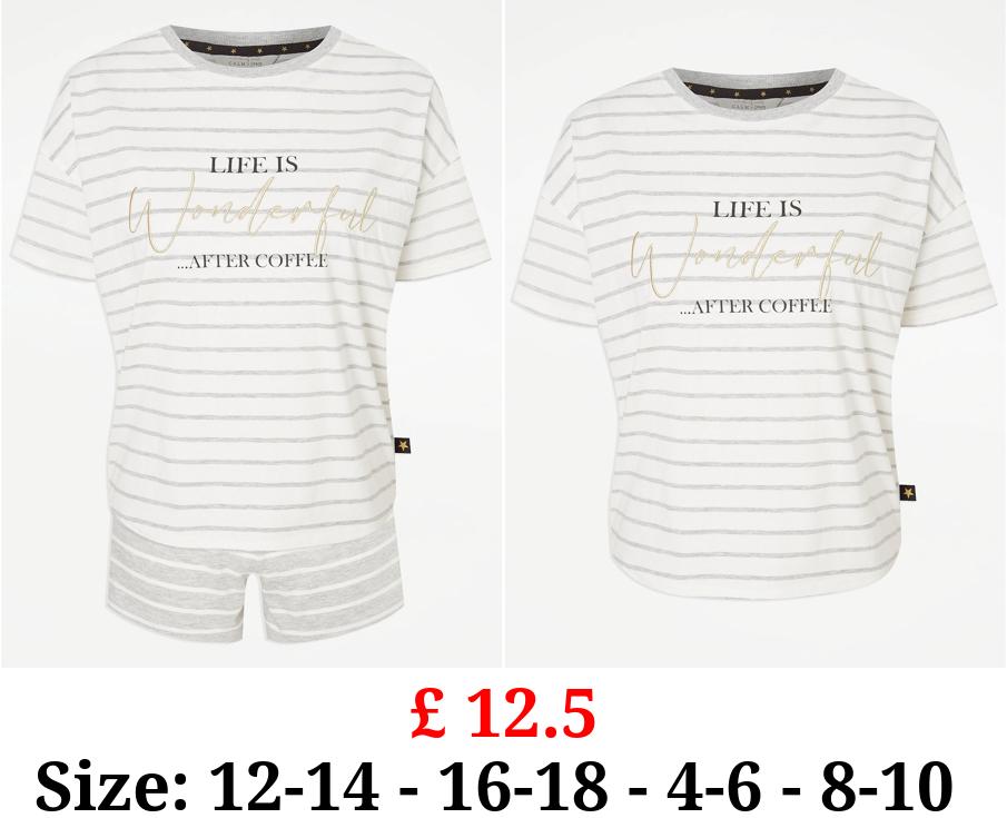 £ 12.5 Grey Striped Coffee Slogan Short Pyjamas