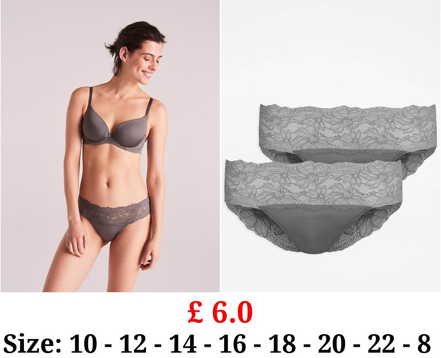 £ 6.0 Grey Lace Trim Bandeau Briefs 2 Pack