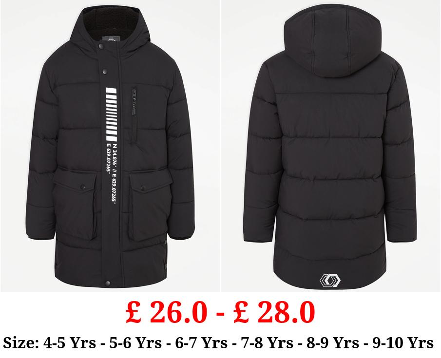 £ 26.0 - £ 28.0 Black Longline Padded Pocket Coat