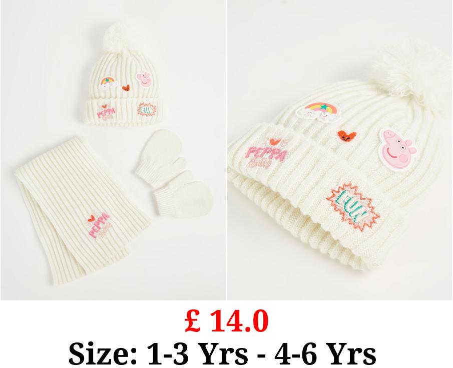 £ 14.0 Peppa Pig Cream Bobble Hat Scarf and Gloves Set