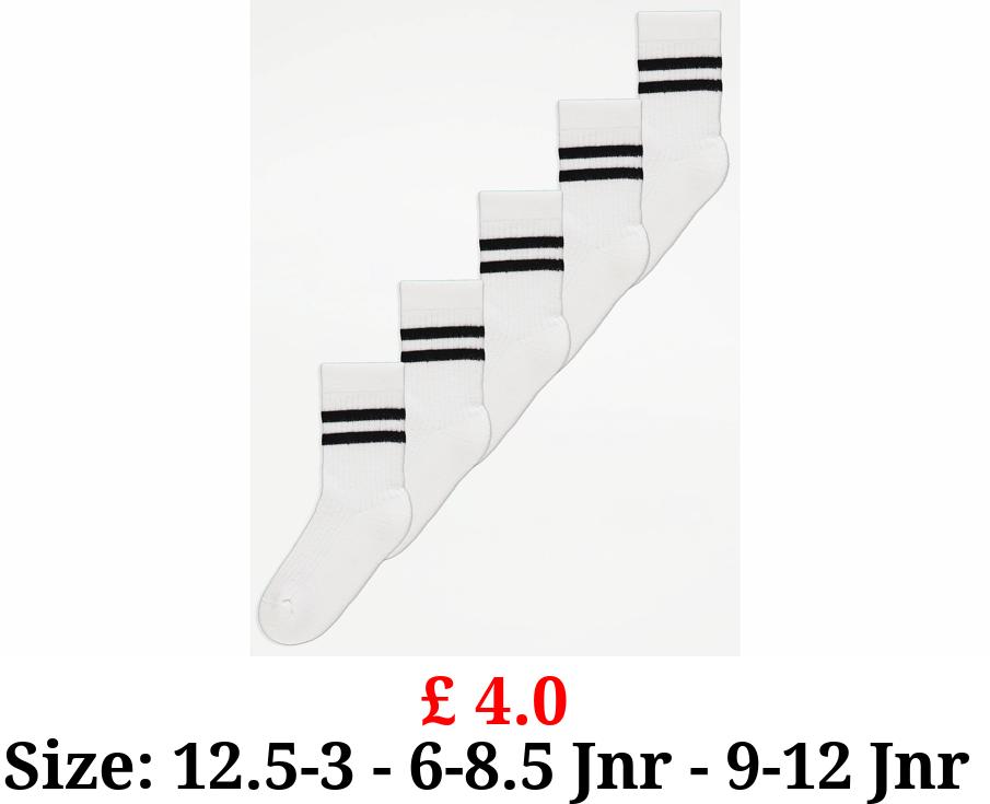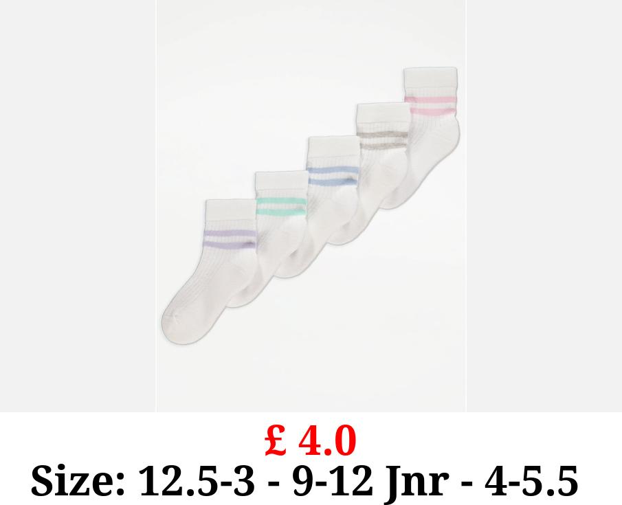 £ 4.0 White Striped Cotton Rich Ankle Socks 5 Pack