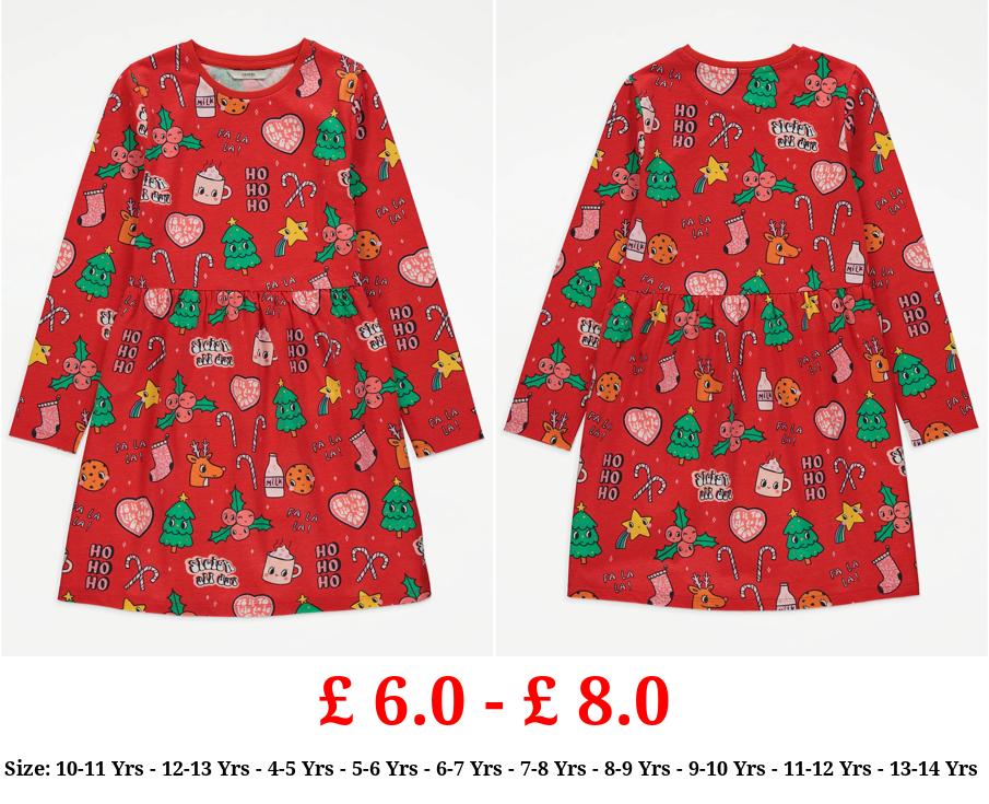 £ 6.0 - £ 8.0 Red Christmas Print Long Sleeve Dress