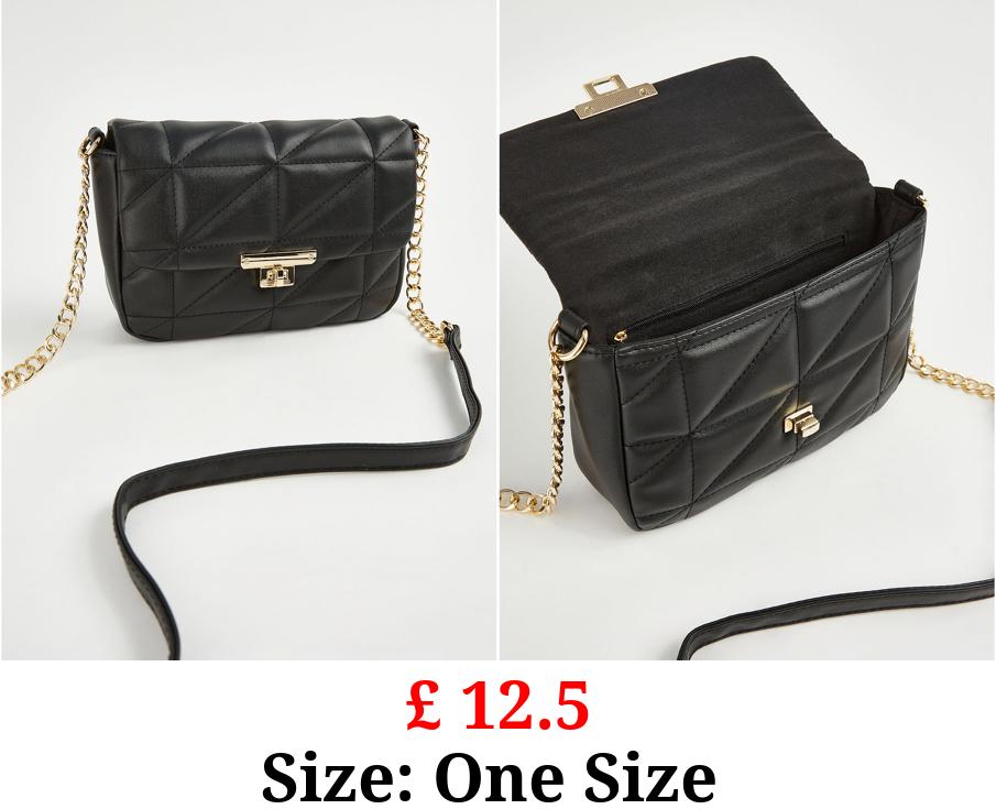 £ 12.5 Black Quilted Chain Cross Body Bag