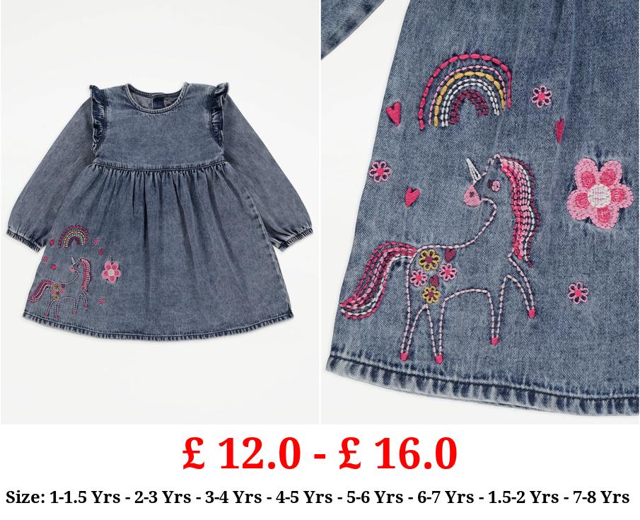 £ 12.0 - £ 16.0 Unicorn Embroidered Long Sleeve Denim Dress
