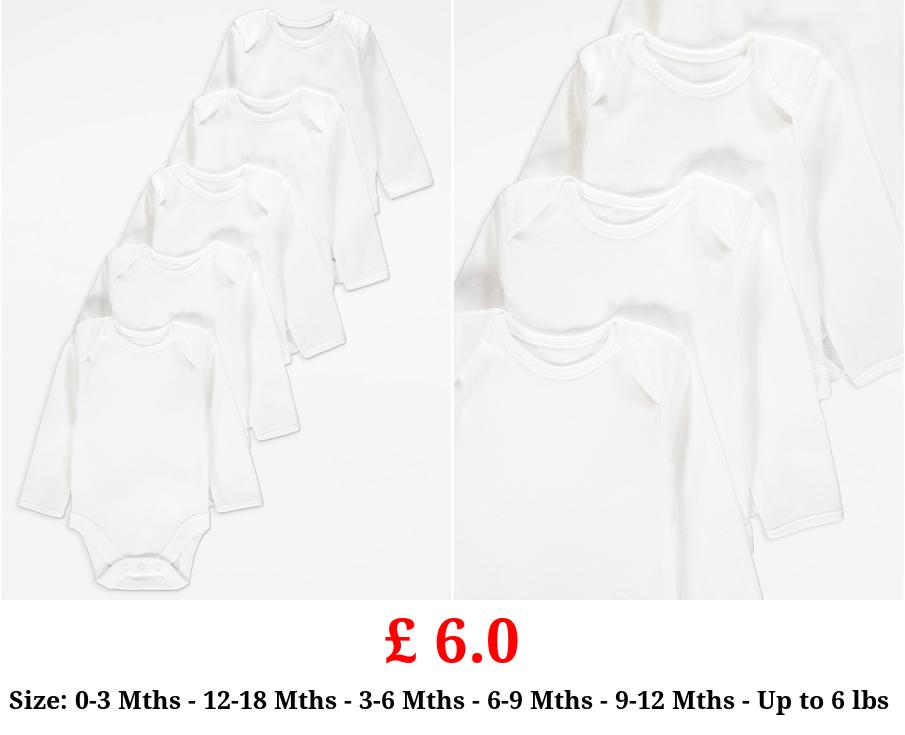 £ 6.0 White Long Sleeve Bodysuits 5 Pack