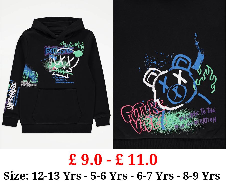 £ 9.0 - £ 11.0 Black Skull Graffiti Print Hoodie