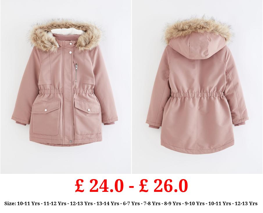 £ 24.0 - £ 26.0 Pink Faux Fur Trim Parka Coat