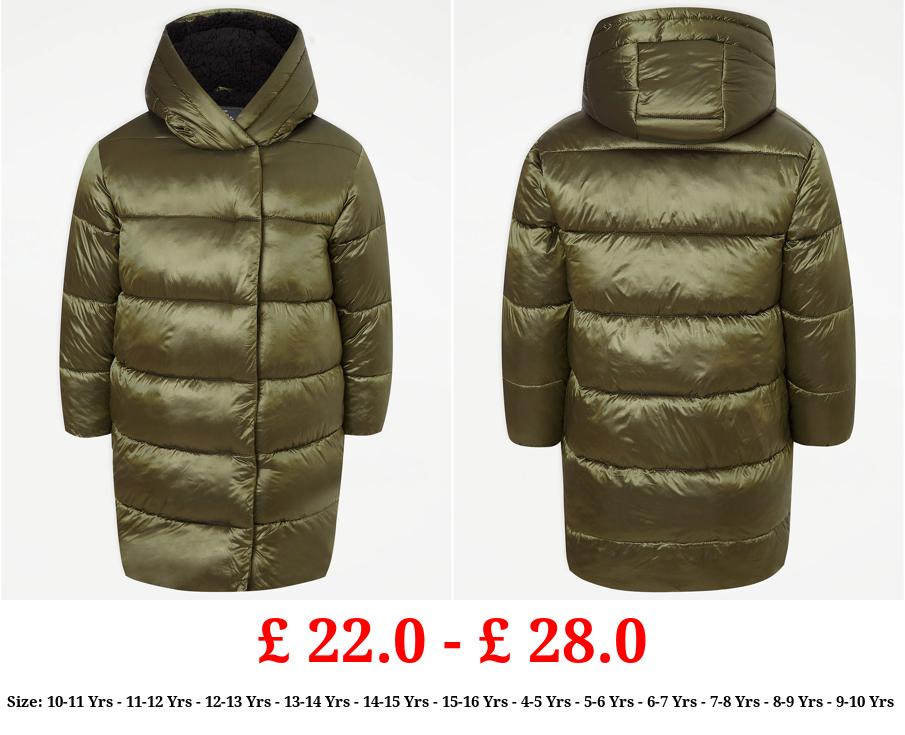 £ 22.0 - £ 28.0 Green Shiny Longline Padded Coat
