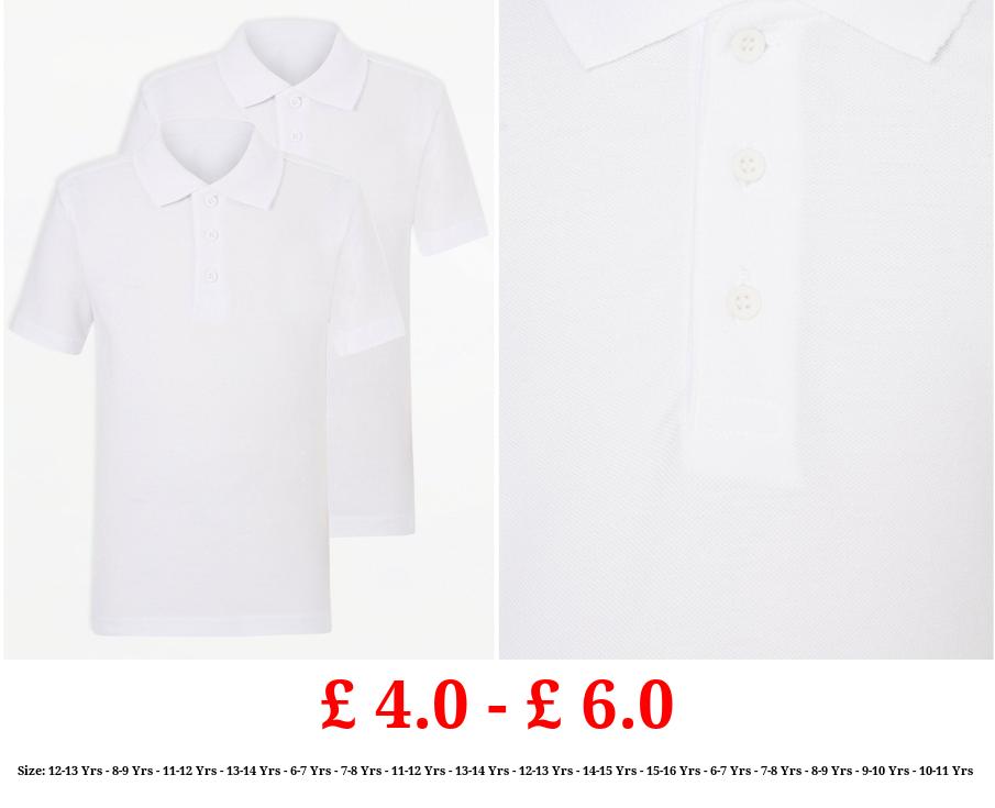 £ 3.0 - £ 6.0 White Short Sleeve School Polo Shirts 2 Pack