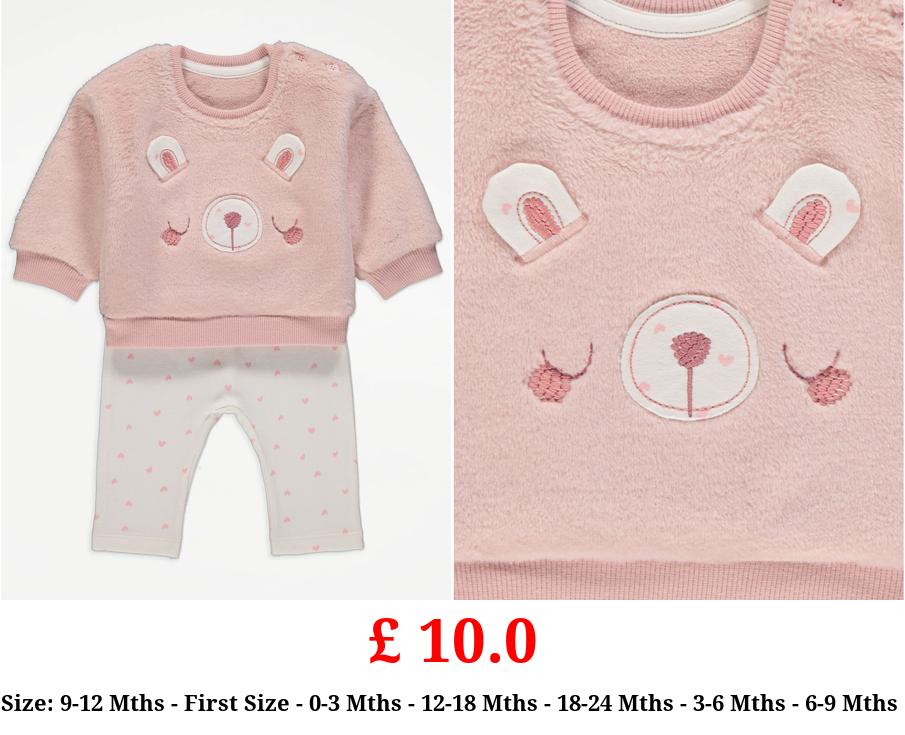 £ 10.0 Pink Fluffy Bear Jumper and Leggings Outfit