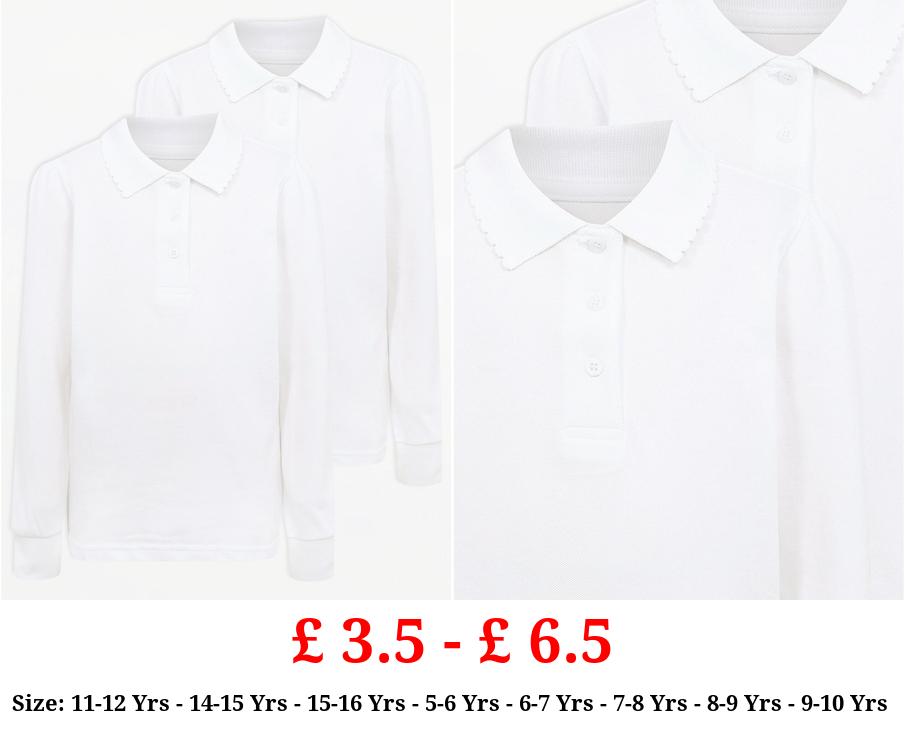 £ 3.5 - £ 6.5 Girls White Scallop Long Sleeve School Polo 2 Pack