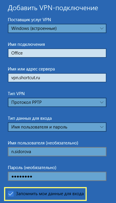 - тип подключения будет PPTP;