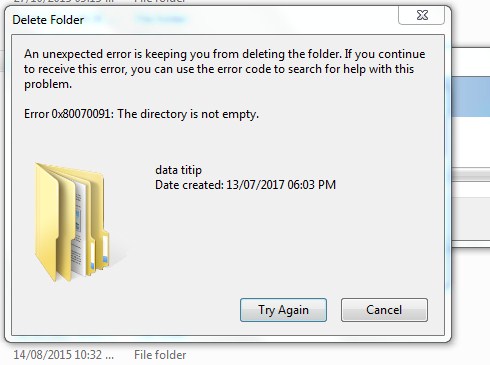 0x80070091 папка не пуста