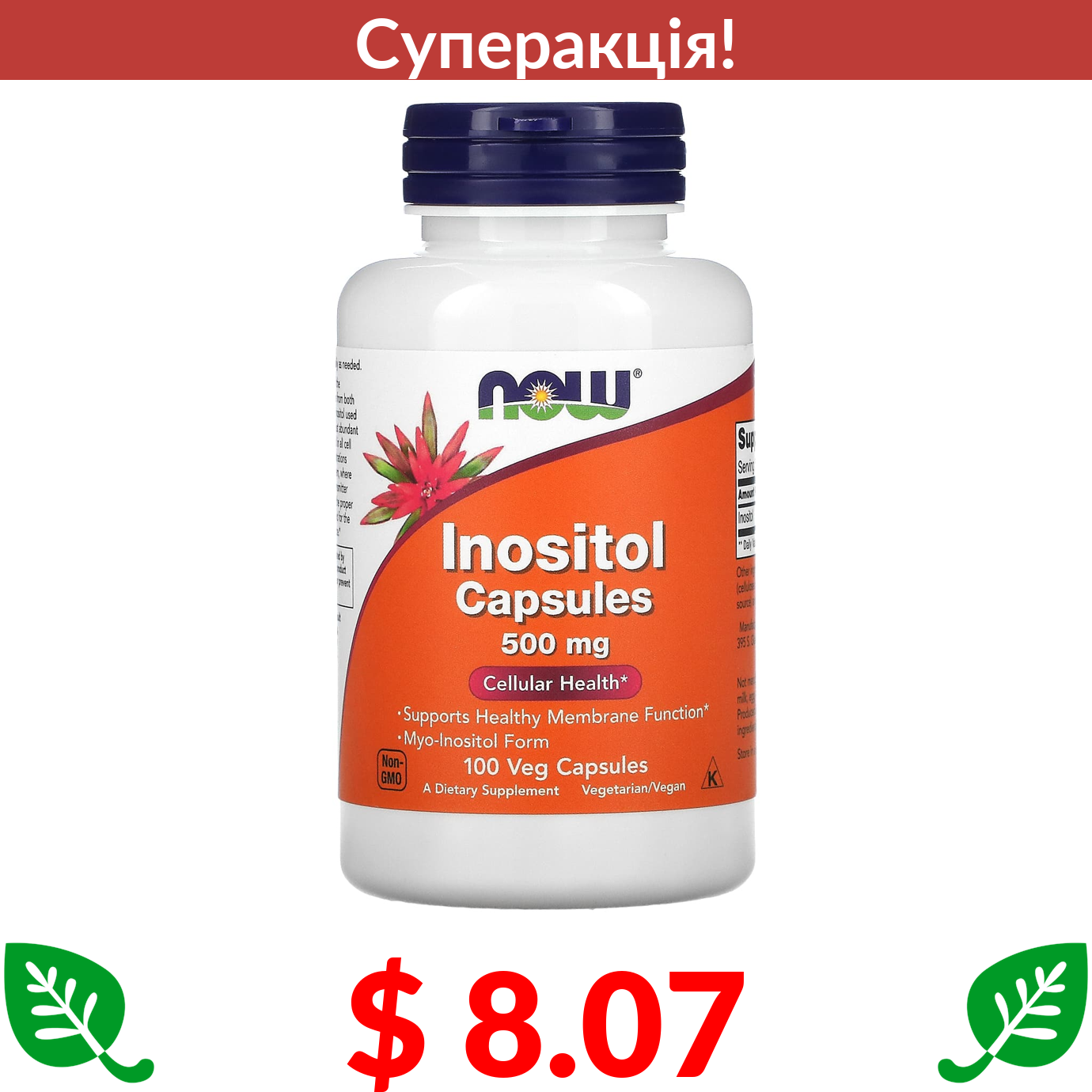 $ 8.07 Now Foods, інозитол, 500 мг, 100 вегетаріанських капсул