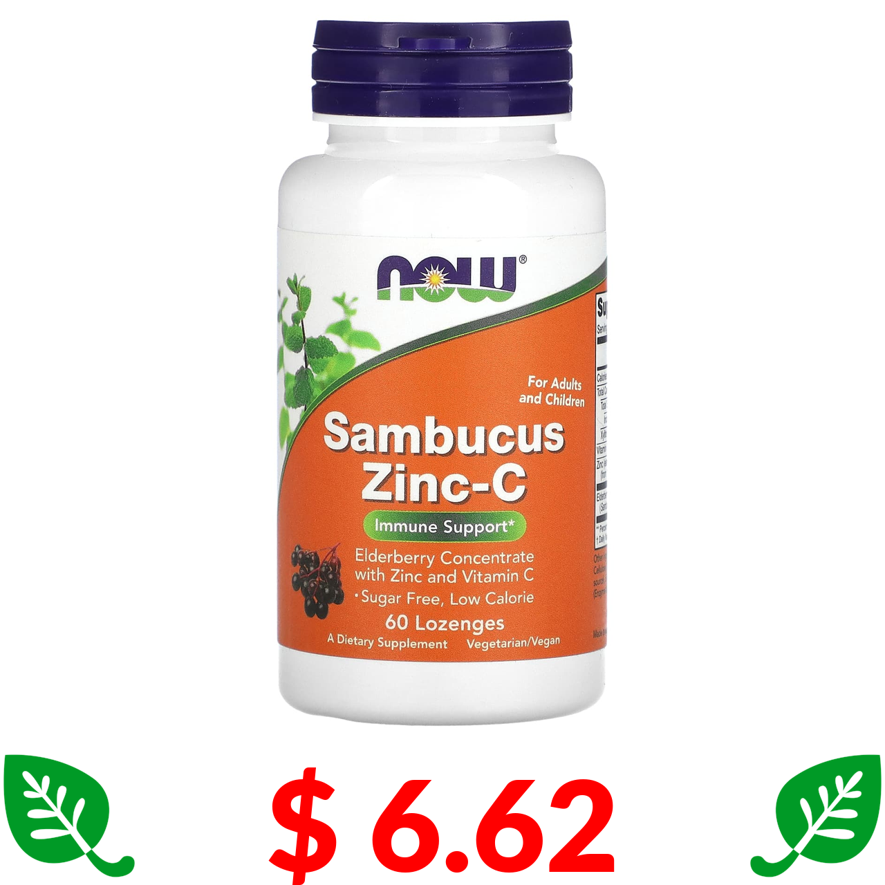 $ 6.62 NOW Foods, Sambucus Zinc-C, 60 Lozenges