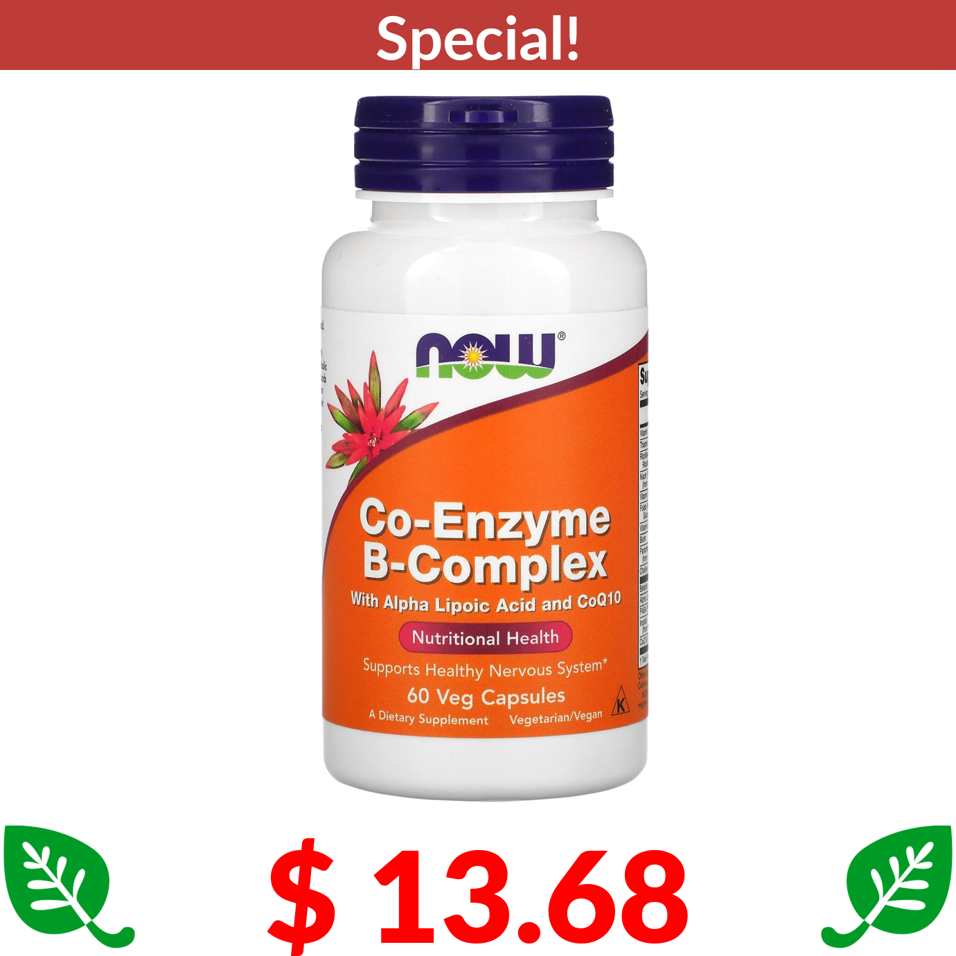 $ 13.68 NOW Foods, Co-Enzyme B-Complex, 60 Veg Capsules