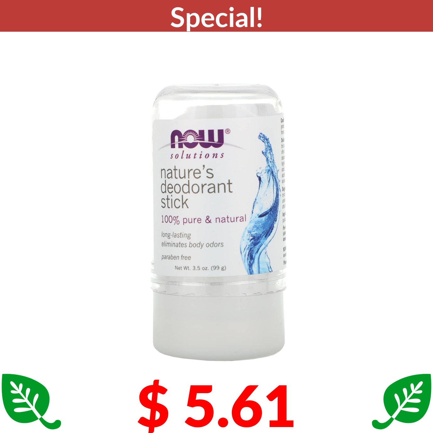 $ 5.61 NOW Foods, Nature's Deodorant Stick, 3.5 oz (99 g)