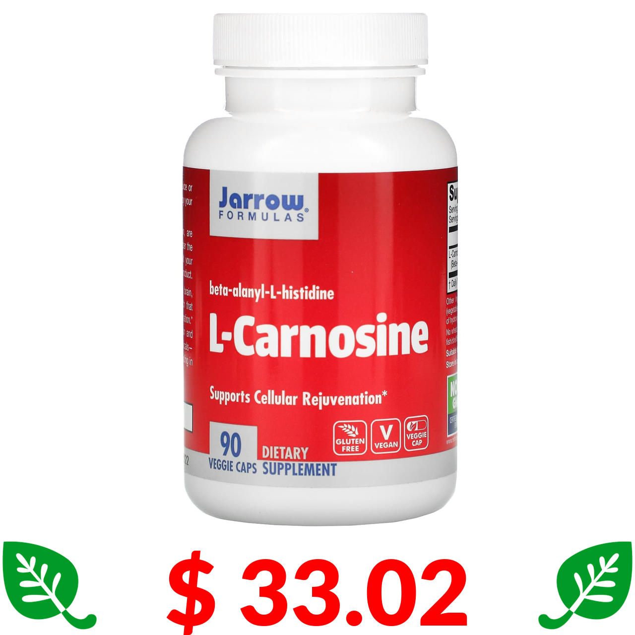 $ 33.02 Jarrow Formulas, L-Carnosine, 90 Veggie Caps