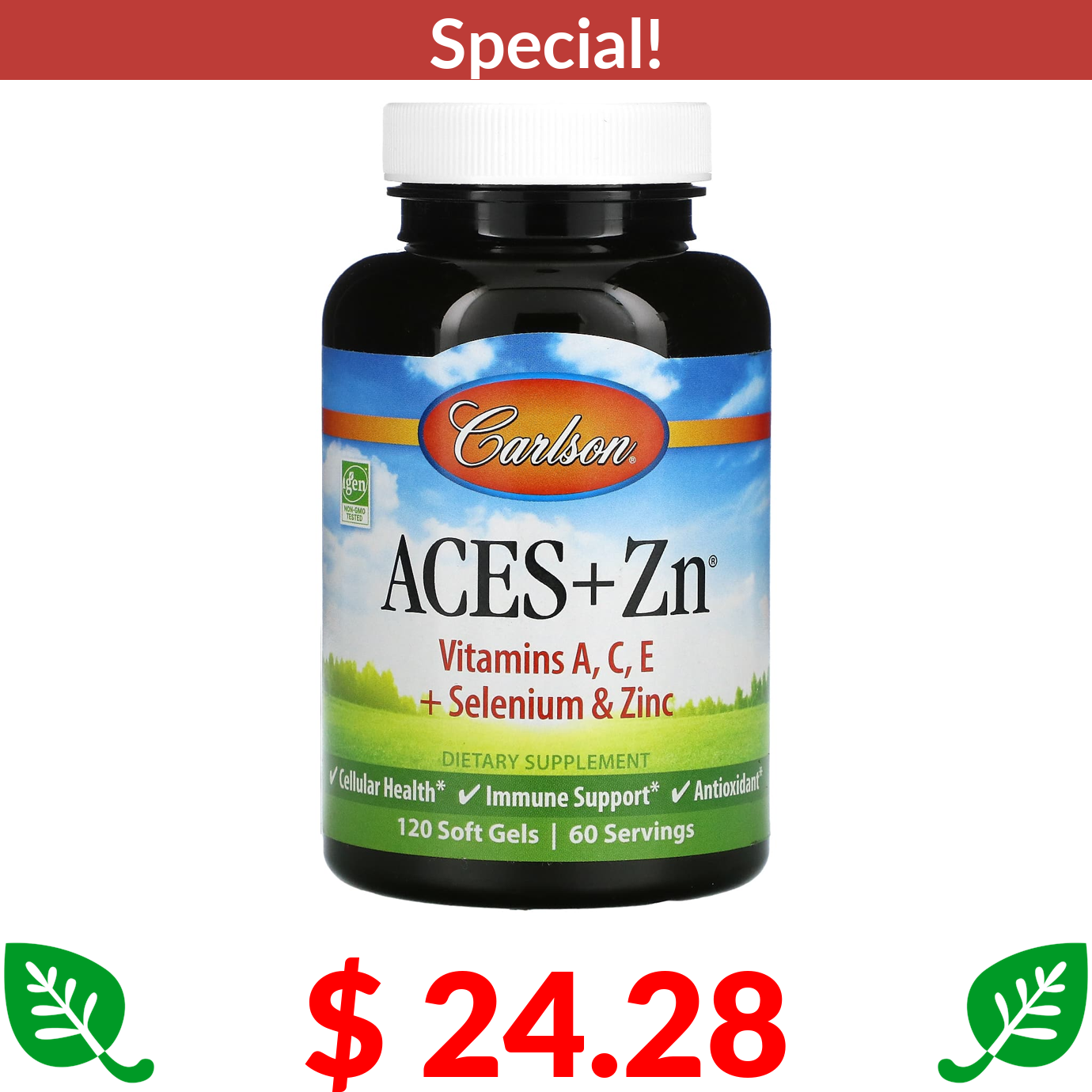 $ 24.28 Carlson, Aces + Zn, 120 Soft Gels