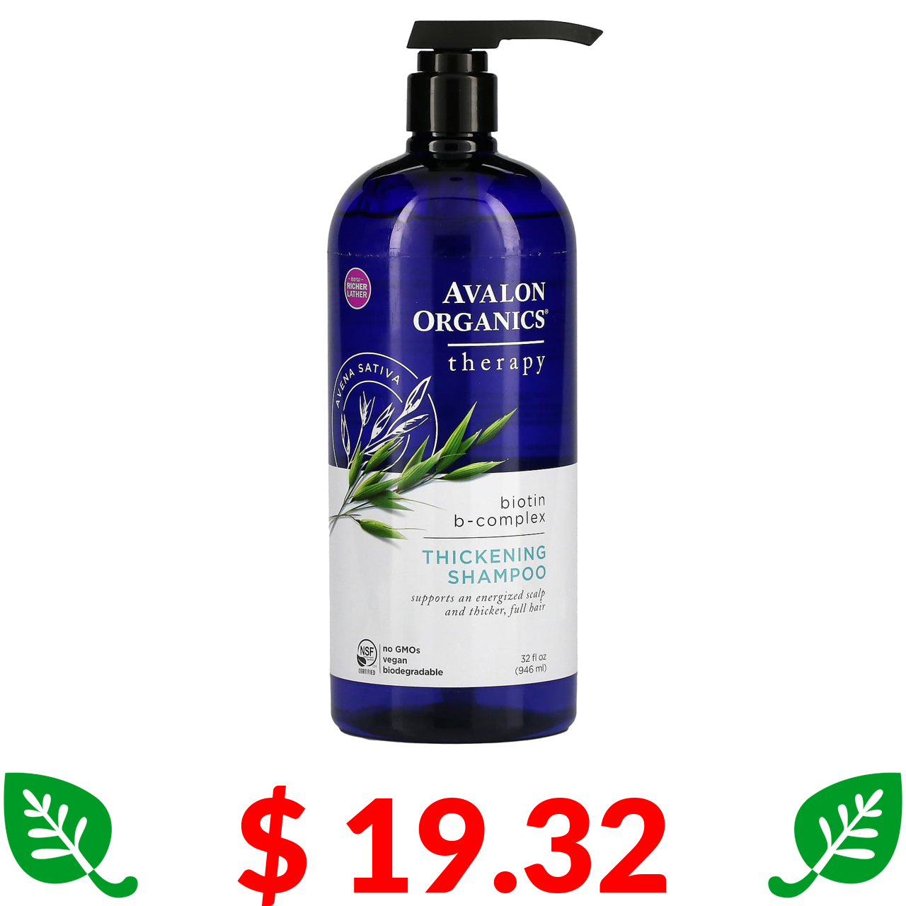 $ 19.32 Avalon Organics, Thickening Shampoo, Biotin B-Complex, 32 fl oz (946 ml)