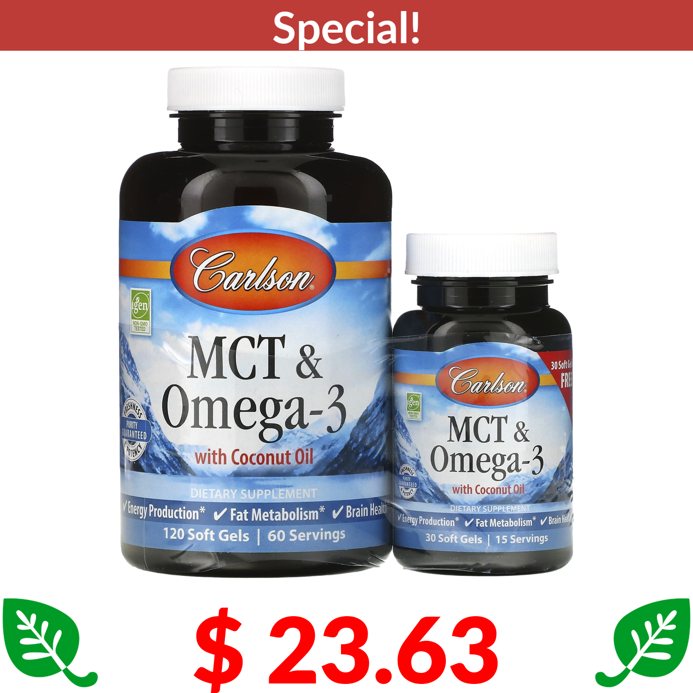 $ 23.63 Carlson, MCT & Omega-3, 120 + 30 Free Soft Gels