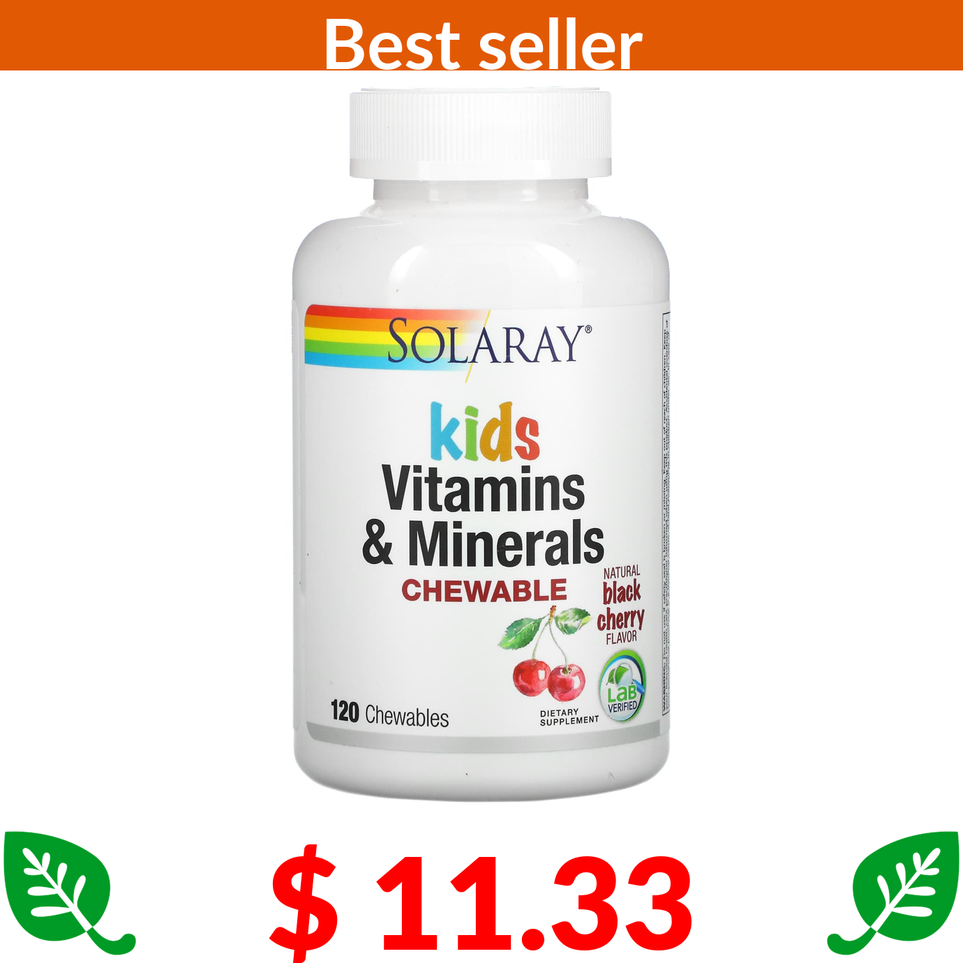 $ 11.33 Solaray, Kids Vitamins & Minerals, Chewable, Natural Black Cherry, 120 Chewables
