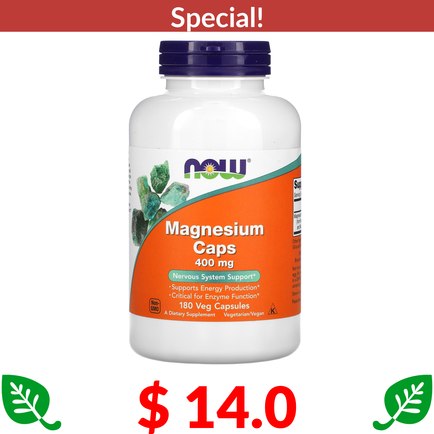 $ 14.0 NOW Foods, Magnesium Caps, 400 mg, 180 Veg Capsules